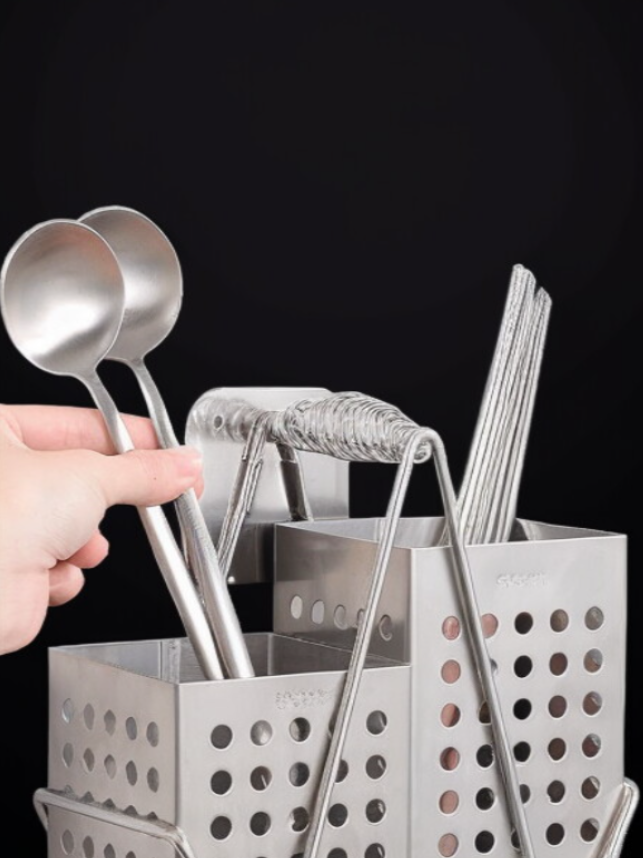 304不銹鋼筷子筒,防鏽耐用,易於清洗,適合家庭使用,通風設計保持筷子乾燥衛生,容量大可收納多副筷子。